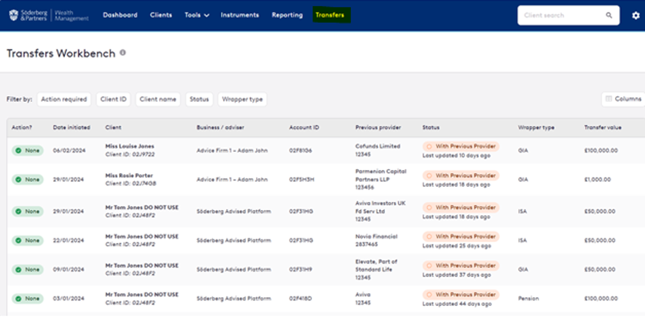 You can see the status of your clients ongoing transfers in the Transfer Workbench. You can find this by clicking 'Transfers' in the top menu.