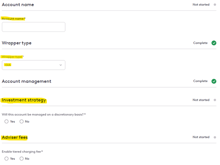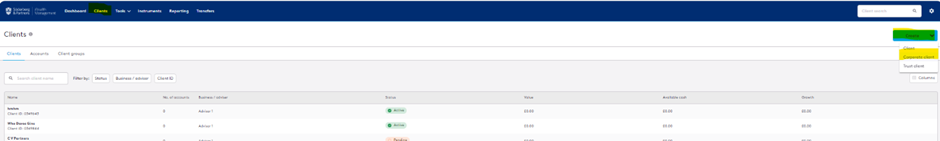 Once the corporate client is active, you can create the GIA account where the investments will be held: