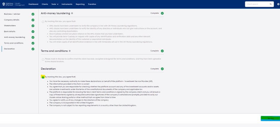 - Accept the declaration, click ’Review’ to double check that all the information is correct and then click submit.