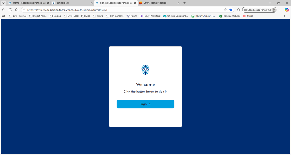 In all instances, you will begin by opening the platform using either adviser.soderbergpartners-wm.co.uk, or your firm's personalised URL if you have completed the branding process: