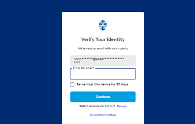 Enter the code, click continue, and you will be taken through to the platform. Again you may wish to click the 'remember this device' button to bypass this process for the next 30 days.