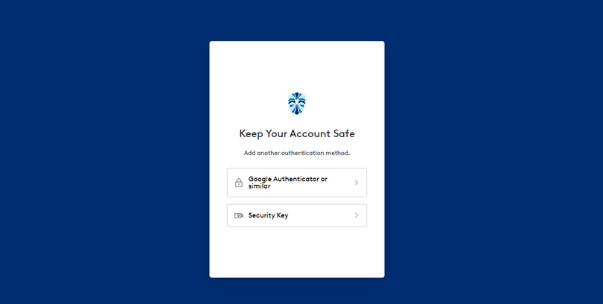 The first time you do this you will be given the option of using an authenticator app, or a security key: