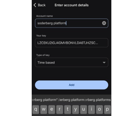 This will automatically add a new row within the authenticator app and this will provide a code, which updates every 30 seconds. Enter this in to the platform login page:
