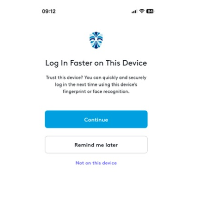 You may then be asked if you wish to set up fingerprint/facial recognition for future logins: