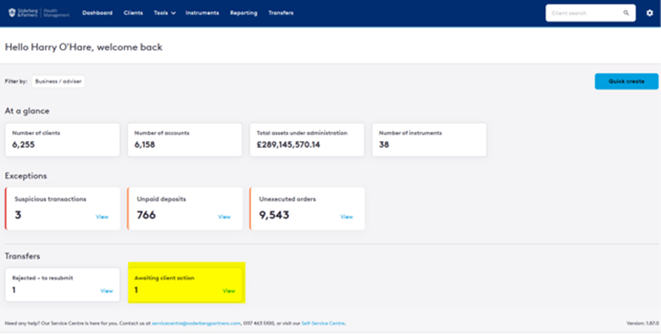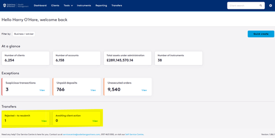 By checking the below dashboard tiles you have easy access to live updates on rejections and any outstanding actions required to move the transfer to its next stage.