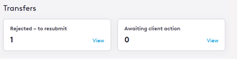 Going forward, we will no longer send email updates for in-flight transfer activity, including when client action is required or where a transfer has been rejected. Instead, all updates and next steps will be clearly visible in one place - within the transfers workbench and dashboard tiles.