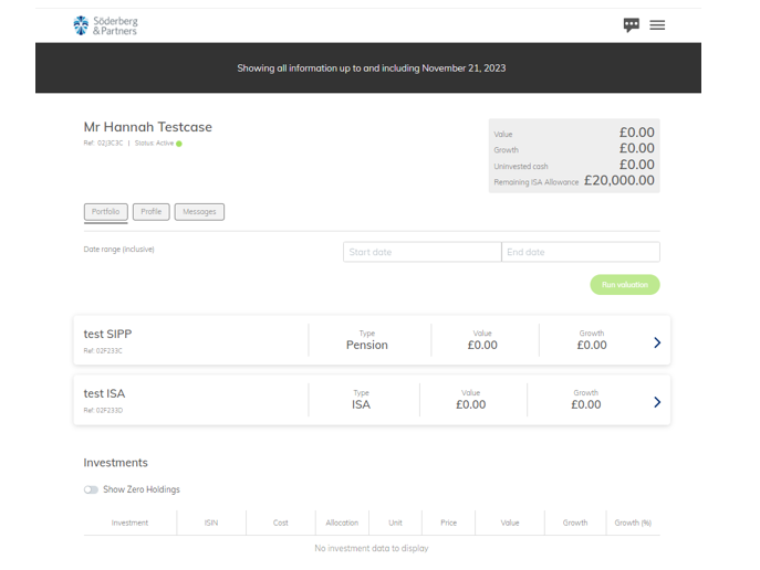 After accepting the terms, the client status will update to active if their bank details were passed by our verification checks. If they are still in a Pending status then we will require some further information and we will reach out the IFA in due course. The client will be taken to the client portal where they will be able to see an overview of their accounts and investments.
