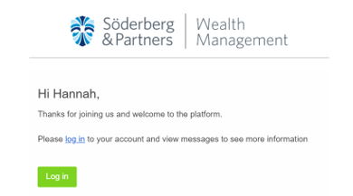 Once the password has been set, the client will be invited to log into the platform. They will also receive an email asking them to log in. Follow either one of these options to be taken to the client portal.