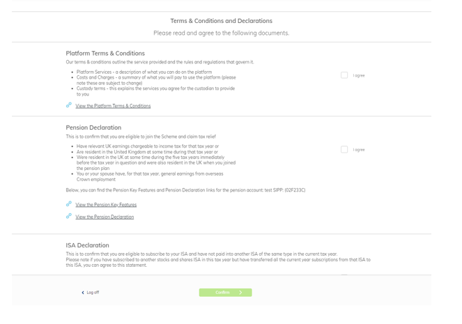 Wrapper specific terms for ISA & SIPP accounts will appear as soon as the client logs on.