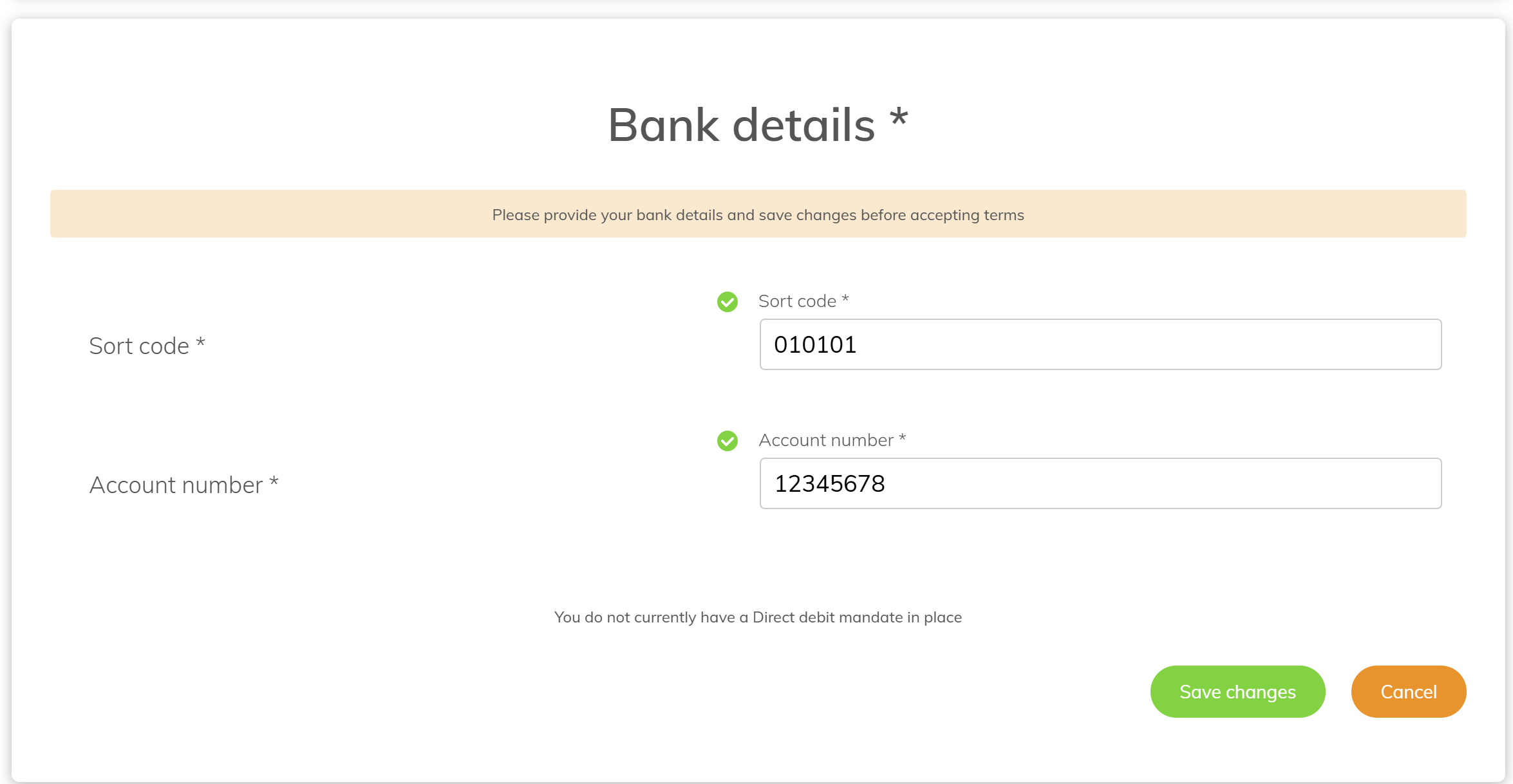 Upon logging in to the platform, the client will be asked to accept platform terms, any wrapper specific terms (SIPP & ISA) and add their bank details and press 'Save Changes' if these weren't added at submission. If you have already input the clients bank details they will not be able to update them.