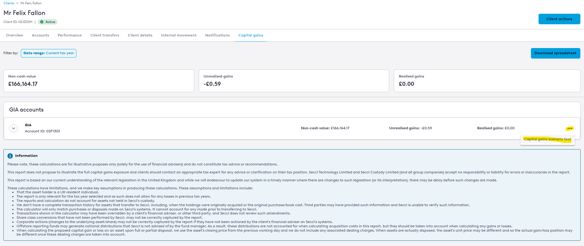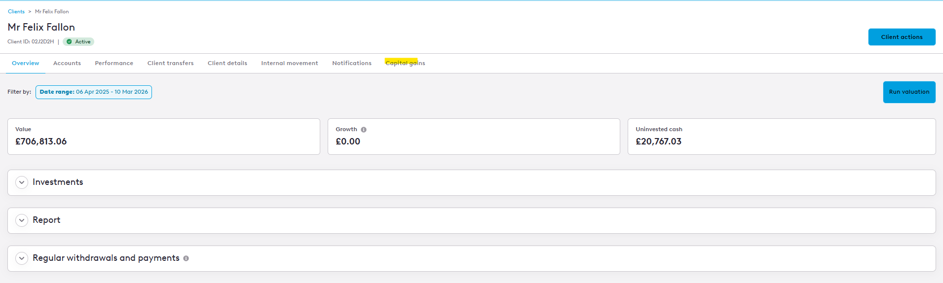 - Head to the clients overview page and select 'Capital gains'